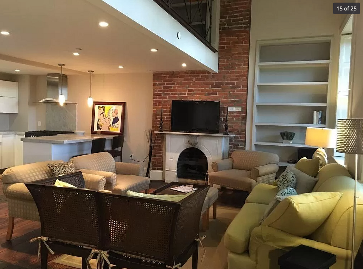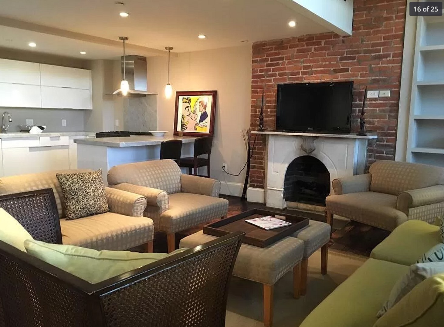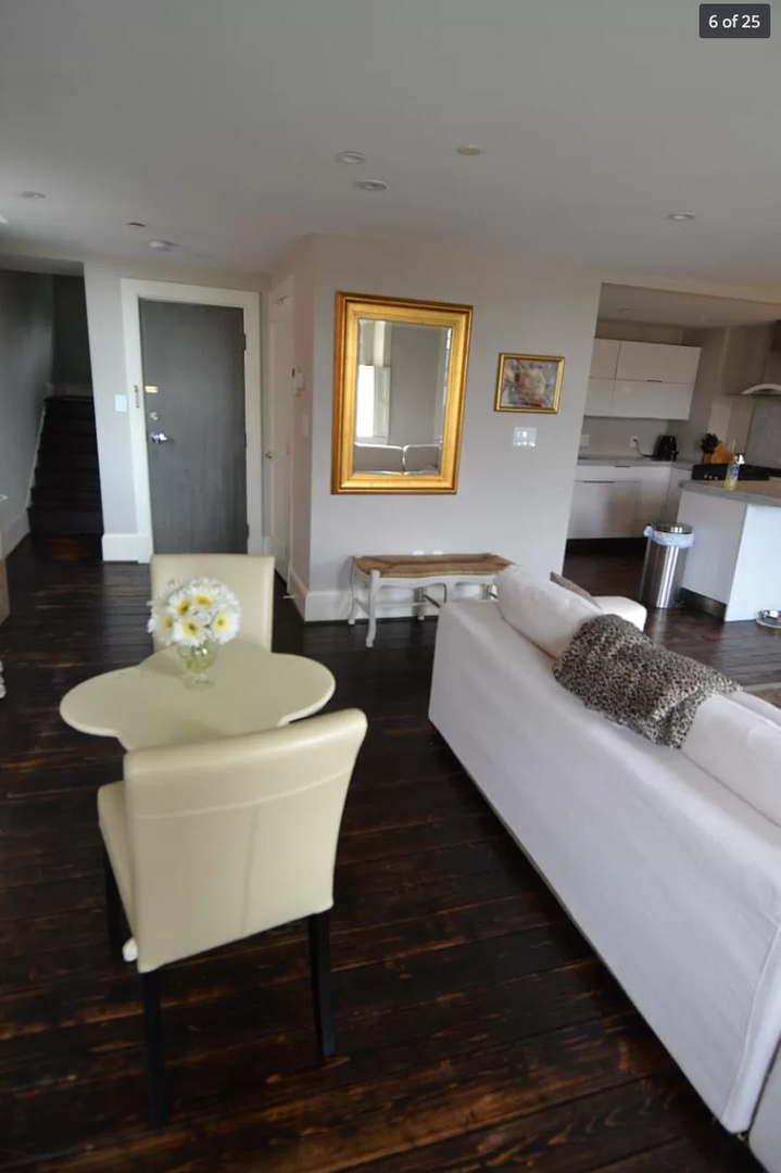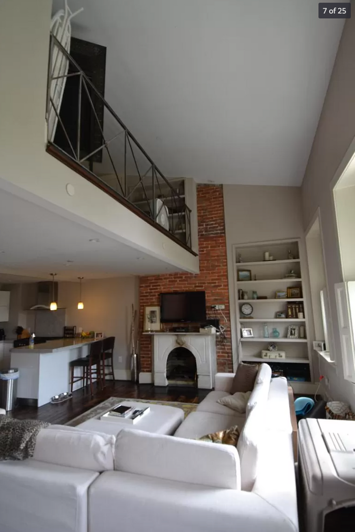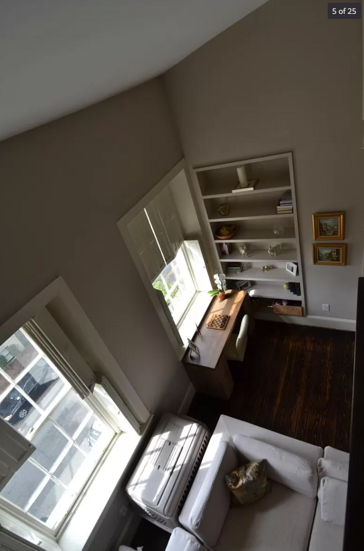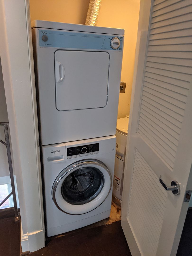 This renovated, two-level unit offers approximately 1,200 square feet of living space, featuring one bedroom plus a loft/den, One and a half bathrooms with marble finishes, hardwood floors, and a fireplace. The apartment includes central heat and air, as well as an in-unit washer and dryer.
